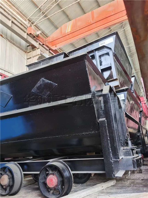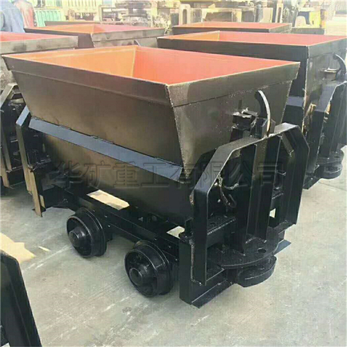 翻斗式矿车车箱断面为V形或U形,支承在车架的翻转轨上,车箱在翻转轨上翻转卸载。翻斗式矿车用在矿山或建筑工地上,用来运输碎的块状物料。如:矿石、煤炭、石头等。由车箱、车架、缓冲碰头、轮轴等组成。结构简单,坚固耐用、使用方便、只需人力打开止动板就能很容易地卸下物料。轮轴采用了滚柱轴承,有效地减少了运行阻力,用人力即可推动。