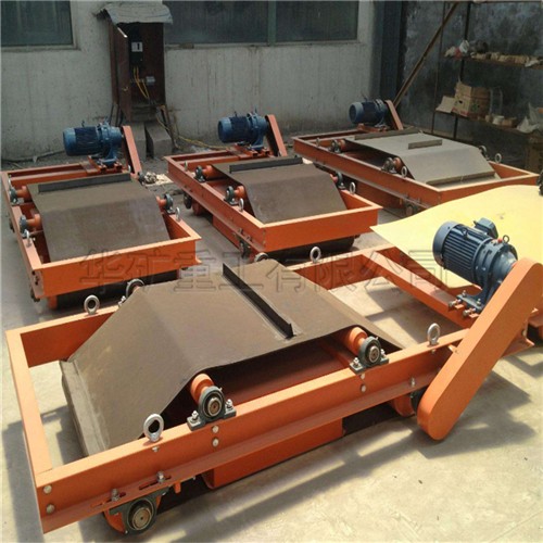 永磁除铁器是利用磁铁吸附铁制品的特性,在有效范围内实现除铁的效果。永磁自卸式除铁器是由钕铁硼永磁磁芯,弃铁皮带、减速电机、框架、滚筒等部分组成,与各种输送机配套使用,用于从非磁性物料中自动清除铁磁性物质,用于物料中含铁较多的场合。