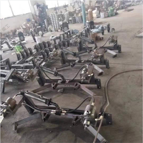 皮带纠偏装置能够自动检测皮带跑偏并予以调整,使皮带始终运行在设定的范围之内。 使用全自动液压纠偏装置能够消除皮带机因安装不准、运转不灵、物料冲击、负荷变化、皮 带断面间伸长率不均等因素造成的皮带跑偏。 液压纠偏装置不需电源、自动调整、结构简单、性能可靠、安装方便。可以在任何恶劣 环境下工作:不怕水、不怕粉尘、不怕物料撞击,不损伤皮带。液压纠偏装置是由检驱轮、油泵、复合油缸、油管总成、固定机架构成。当皮带运行跑 偏时,皮带与检驱轮接触,检驱轮带动油泵旋转,输出压力油控制驱动油缸往复运动,带动 调心托辊偏转,使调心托辊的线运动方向与皮带的运动方向形成一个夹角,产生的摩擦力驱 动皮带,使皮带始终在设定的范围内运行,从而避免皮带跑偏造成散料及皮带与皮带机机架 摩擦撕带,达到保护皮带机正常运行之目的。