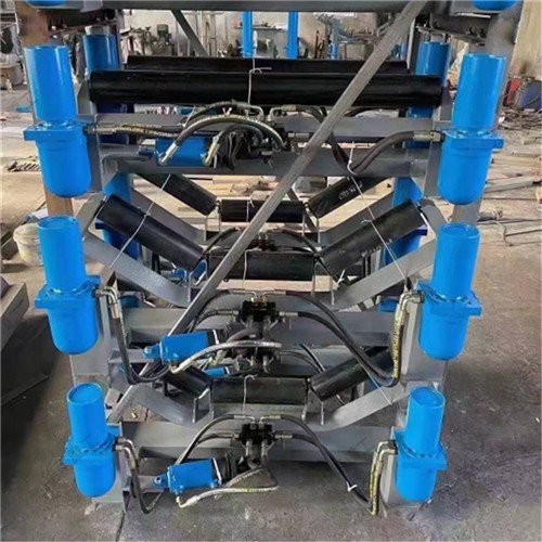 皮带纠偏装置能够自动检测皮带跑偏并予以调整,使皮带始终运行在设定的范围之内。 使用全自动液压纠偏装置能够消除皮带机因安装不准、运转不灵、物料冲击、负荷变化、皮 带断面间伸长率不均等因素造成的皮带跑偏。 液压纠偏装置不需电源、自动调整、结构简单、性能可靠、安装方便??梢栽谌魏味窳?环境下工作:不怕水、不怕粉尘、不怕物料撞击,不损伤皮带。液压纠偏装置是由检驱轮、油泵、复合油缸、油管总成、固定机架构成。当皮带运行跑 偏时,皮带与检驱轮接触,检驱轮带动油泵旋转,输出压力油控制驱动油缸往复运动,带动 调心托辊偏转,使调心托辊的线运动方向与皮带的运动方向形成一个夹角,产生的摩擦力驱 动皮带,使皮带始终在设定的范围内运行,从而避免皮带跑偏造成散料及皮带与皮带机机架 摩擦撕带,达到?;てごT诵兄康摹?/span>