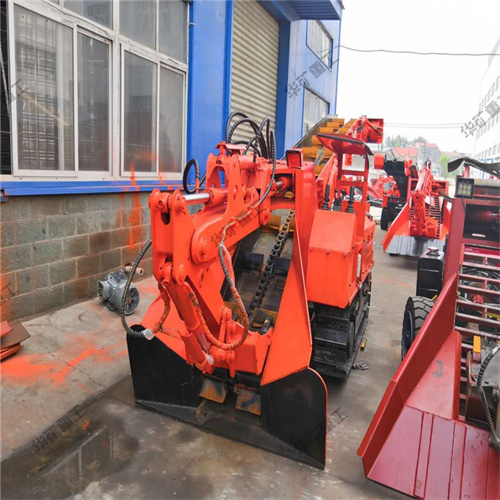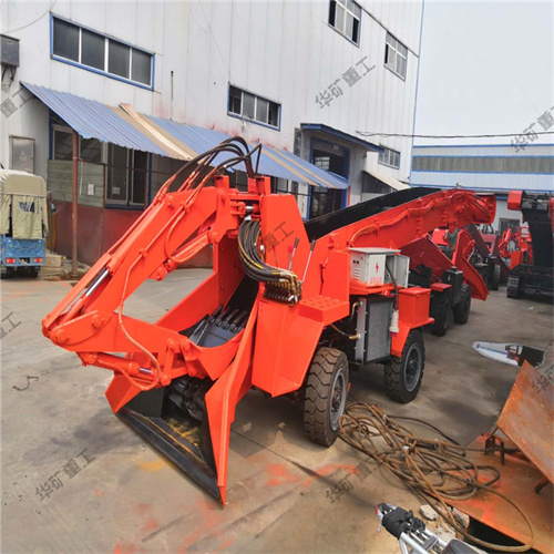 矿用挖掘式装载机又称扒渣机,坑道清理机,坑道出渣机。按照行走方式分为轮式和履带式。它是及液压行走,挖掘装置,皮带输送,装车,清理巷道底部五种功能。主要由电动机,液压行走,挖掘装置,行走装置,皮带输送卸料和电器控制系统等部分组成。整车液压系统由一台15kw电动机为动力带动齿轮泵,液压油经油箱到多路阀到执行动作元件再回到油箱,通过多路阀的四个手柄完成对液压装置的控制。它突出的优点就是操作灵活,出渣效率高,以:2m*2m巷道为例,一排炮在一小时左右就可以清理干净。