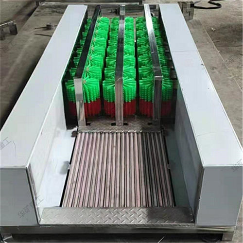 矿用洗靴机是井下人员升井后通过洗靴机时,洗靴机全智能控水、电、动力系统的运行,可以一次性洗净靴子底纹和靴面靴筒上的煤泥,保持靴子表面的清洁。矿用洗靴机是主要由洗靴系统、支撑部件、传动系统、电控系统、连接部件、人体行走扶手等构成,安置在井口或副井井口洗靴池处。升井人员走至洗靴机时,人体红外线传感器便会指令自动打开传动系统和喷淋系统,矿工行走或任意停留在刷洗靴机中间,就可自动把胶靴底、靴面、靴帮、靴尖、靴跟刷得干干净净,彻底解决了员工升井后还要用手刷靴,费时费力还刷不干净的问题,减轻了员工劳动强度,保持了井口卫生,减轻了粉尘污染,又能节约用水,是矿井标准化建设的可靠产品。