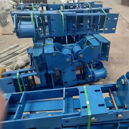 托绳轮为保证无极绳连续牵引车钢丝绳有一定的初张力必须配置张紧装置。本设备张紧装置为重锤式,主要由框架、张紧绳轮、动轮组、转向轮、配重块和防护网等组成。