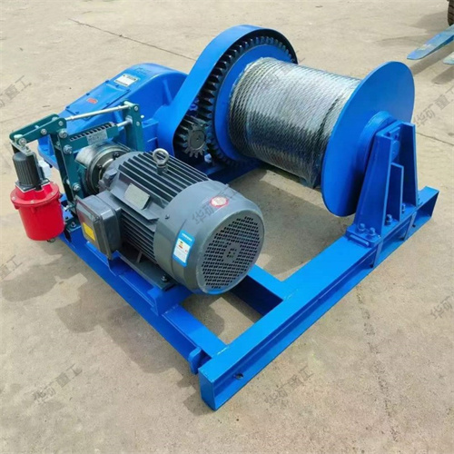 电动卷扬机由电动机、联轴节、制动器、齿轮箱和卷筒组成,共同安装在机架上。对于起升高度和装卸量大工作频繁的情况,调速性能好,能令空钩快速下降。对安装就位或敏感的物料,能用较小速度。