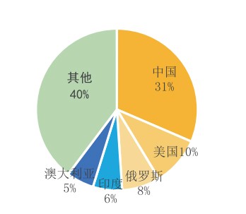 ● 美国、俄罗斯、中国是全球主要矿业大国。2018年,三国矿产资源总产量占全球49%,总产值占全球40%。