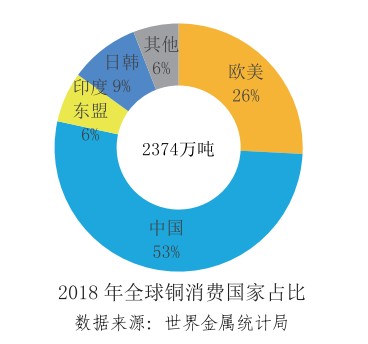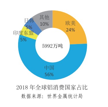 亚洲新兴经济体已成为全球金属矿产消费中心。2018年中国、印度、东盟等亚洲新兴经济体,铁、铜、铝消费全球占比分别为59%、59%和61%。