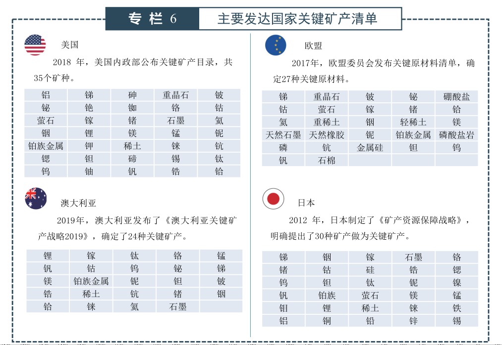 ● 欧盟加强区内矿产资源开发,强化关键矿产稳定供应。加强全球矿产资源治理,推动安全获取关键矿产原材料,发展清洁、可再生能源。
