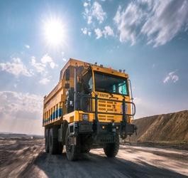 参与作业生产的新款无人矿用卡车长8.7m,高4m,满载负荷为90吨,满载稳定时速20km/h。