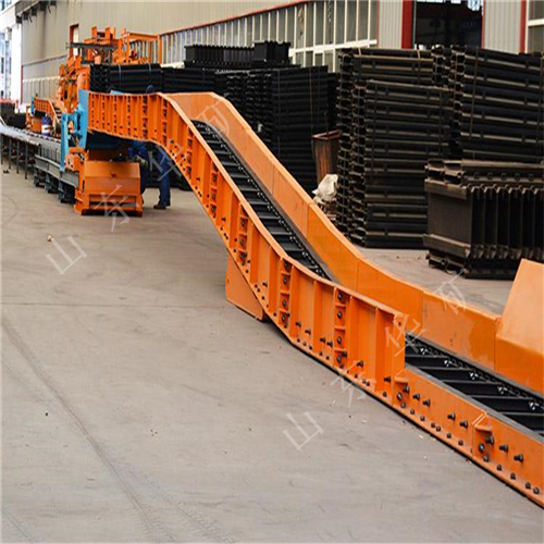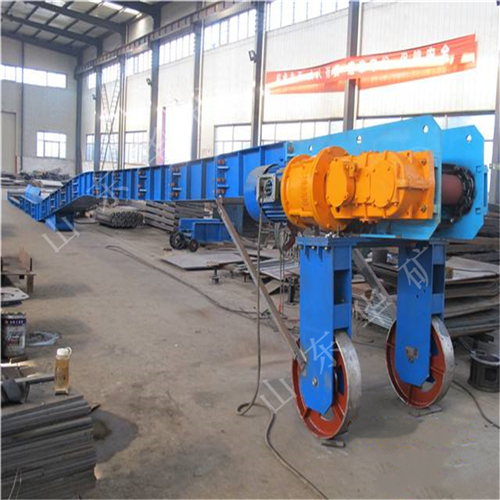 刮板转载机是一种可以纵向整体移动的重型刮板输送机,其长度较小,便于随着采煤工作面的推进和带式输送机的收缩而整体移动。转载机安装在采煤工作面运输巷中,与可伸缩带式输送机配套使用,同工作面刮板输送机衔接配合顺槽用刮板转载机有轧制中部槽组装式和整体组焊箱式结构两种,主要用于综合机械化采煤,在长壁工作面刮板输送机和顺槽可伸缩皮带机之间起转载输送煤炭的作用。使用转载机后,可以避免顺槽可伸缩皮带机机尾的频繁移动,从而保证工作面生产的顺利进行。刮板转载机主要应用于高产、高效综合机械化工作面顺槽转载输送煤炭。它是由中部槽、链条、刮板及牵引系统组成。