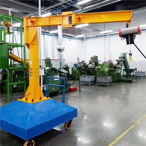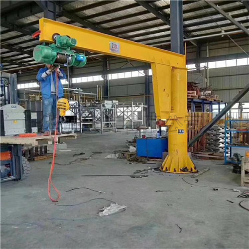 BZD型旋臂起重机是与PK型环链电动葫芦或CD、MD型电动葫芦配套使用的一种起重机械。它由立柱、回转臂、悬臂驱动装置和电动葫芦组成。立柱下端底座通过地脚螺栓固定在混凝土基础上,由电机带动减速机驱动装置使悬臂回转,电动葫芦在悬臂工字钢上作往返运行作业。BZD型旋臂起重机具有结构简单,操作方便,占用空间小,作业范围大等特点。广泛应用于机械制造、汽车、造船等现代化工业的生产线、流水线、装配线及仓库、码头、实验室等场合的物料吊运作业中。是企业提高工效,改善劳动条件的理想起重设备。 BZD型旋臂起重机属于轻中级工作制,额定工作量为0.25t、0.5t、1t、2t、3t、5t六种规格。根据工作岗位需要选用不同规格型号的起重机和起升速度与运行速度。该机具有两种操纵形式:电动回转和手动回转。旋转臂的回转角度根据使用场所需要可选择180°、270°、345°、360°等不同的角度。