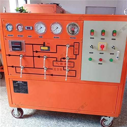 整个SF6气体充气和抽真空装置包括:真空泵、数显真空计、电磁真空装置、真空压力表、压力调节器、输气管以及维护SF6断路器所xu的阀门和仪表控制部件。
