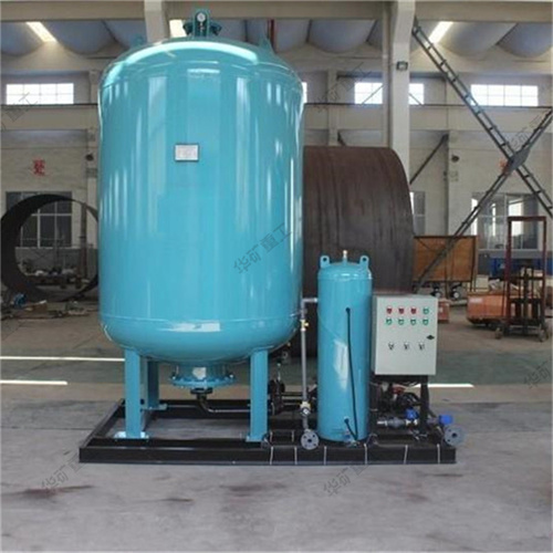 初始运行时首先启动泵向系统及气压罐内的水室中充水,系统充满后多余的水被挤进胶囊内。因为水的不可压缩性,随着水量的不断增加,水室的体积也不断的扩大而压缩气室,罐内的压力也不断的升高。压力升到设计压力时,电控柜切断水泵的电源,水泵停转,此时利用罐内被压缩气体的压力将罐内贮存的水送入给水管网,水室缩小,气室扩大,罐内压力也随之下降,当压力降低到设计允许的 压力时,电控柜接通水泵电源,水泵重新启动,电接点有两个设定压力点,一个是水泵启动压力P1,一个是水泵停止压力P2,P1、P2分别是系统 定压点及工作压力。当通过囊式定压罐后系统压力仍达不到P1时,控制箱控制水泵开启向系统,当补到系统压力和罐内压力大于P2时,水泵停止。如此周而复始,不断运行。