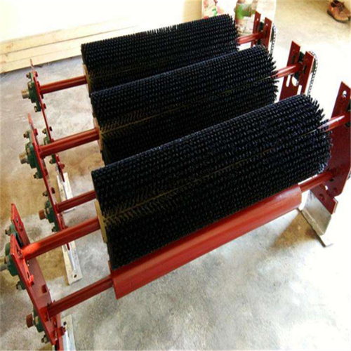 毛刷清扫器,毛刷借滚筒紧贴输送带的载荷面清扫卸载后粘结在输送带上的煤粉。毛刷清扫器在输送机上有着不可忽视的作用。在运行中,如果人为的清除机尾滚筒附着物,往往容易发生严重人身伤亡事故。而清扫器有及时、方便地、快速的清除滚筒附着物的特点。