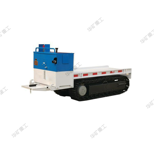 气动履带运输车以压缩空气为动力,以我公司设计的高效大功率气动马达为动力,带动液压泵站工作,泵站再驱动履带的行走机构,实现履带自行走功能。运输车仅靠一根风管为动力源,即实现了所有的功能。该运输车体积小结构紧凑,灵活轻便,能满足在巷道内复杂路况下运输重物的需求。气转液的工作模式,无需接电,安全防爆,便于维护。且避免了纯气动输出功率不稳定,牵引力难以控制的弊端。整车运行更平稳可靠,牵引力更大。