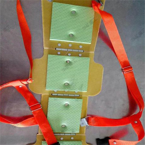 固定采用热熔玻璃胶胶合,配合双面铆钉,美观且解决了护垫脱落问题。链接采用不锈钢加厚合页,使用时间长。双面铆钉铆合,坚固且接触面平滑舒适。背带采用2.5cm加厚橙色织带,舒适。胸前加两排横档插扣,利于固定背甲贴身作业,减少脱落。制作板材的选材严格,工艺好且美观的板材制作。没块板材都经过打磨。背带与板材链接采用厚铁制链接件,连接件设计合理,可适当转动,既坚固又舒适。加贴反光条,昏暗的灯光下也可以看清