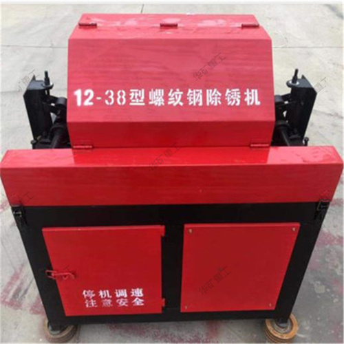 螺纹钢筋除锈机可针对16-32的螺纹钢进行除锈抛光,一次成型。本机采用双电机设计,双转向。转向一正一反完全解决了钢筋在除锈中的预应力,从而使工作人员更安全更轻松的完成除锈工作,本机只需一人便可轻松操作每分钟在除锈50米以上。