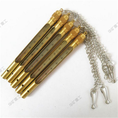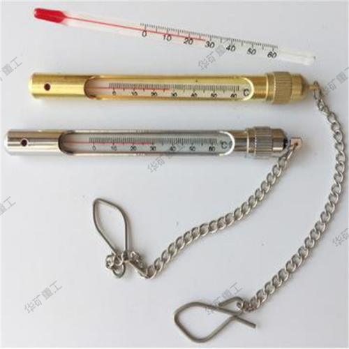 铜管温度计主要应用于煤矿井下通风救护队测量矿井准确温度。俗称为金属套温度计,是由玻璃内标式温度计外安装一个金属防护套,它可直接安装在锅炉或机械设备上,起安全抗压保护作用,应用也很广泛。金属防护套温度计按其型状不同,可以分为直形(WNG/WNY-01),90°(WNG/WNY-02)和135°(WNG/WNY-03)三种玻璃棒式温度计;按其用途不同,又可以分为水银和有机液体两种类型水银温度计可测-30+500℃以内温度,有机液体为红色,可测-100+200℃以内温度,玻璃棒式温度计按用户需要,可以生产各种长度的温度计,最长可以生产到3米。