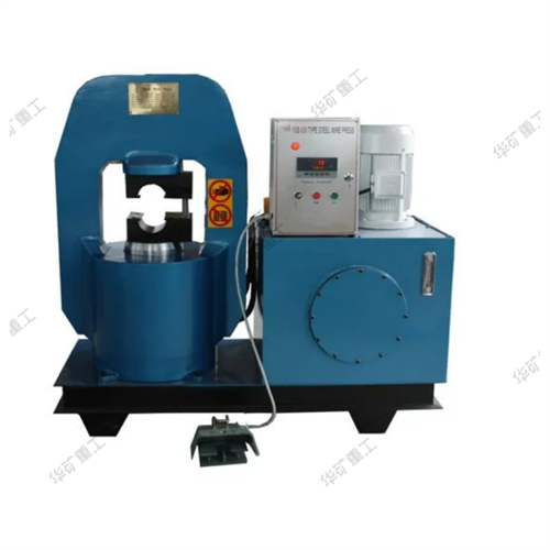 钢丝绳压套机由主体框架部分、液压部分、电器部分、底座等四部分组成。国内外目前主体框架结构为:整体铸钢花蓝式、四梁立柱式、预应力钢丝缠绕式、和"c"型开口式等形式。