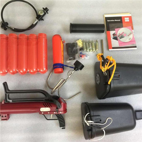 救生抛投器只要由:枪体、救生绳、牵引绳、发射器、发射器瓶、自动充气装置、救生圈、塑料保护套等组成。
