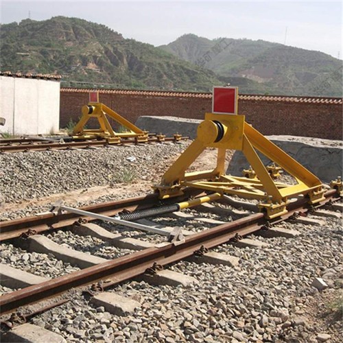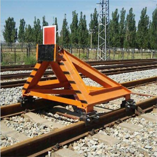固定挡车器主要用于铁路尽头线上的防撞挡车安全防护设备,缓冲头与车钩之间通过缓冲橡胶板接触,承受溜逸车辆车钩的撞击,迫使溜逸车辆停止溜逸,针对使用单位的实际情况,为满足使用单位提出的具体要求而设计的产品。占用线路短,结构简单,造价较低,维护方便。可以用在车辆编组较小、冲击速度不高的场合。