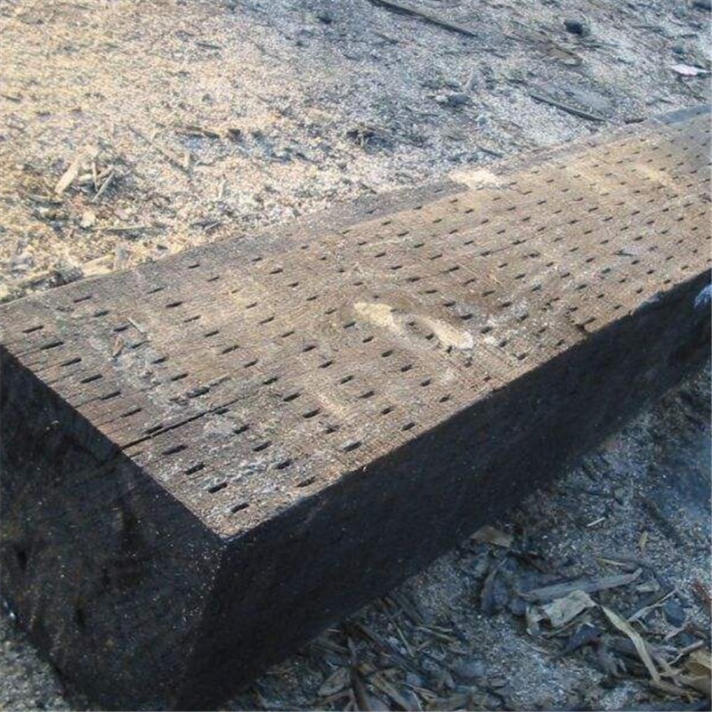油浸枕木是用化学方法处理过的,把木材素枕浸在煤焦油和蒽油的混合溶液里经过高温高压,木材吸饱了这种防腐剂,变得非常坚硬,非但不容易腐烂,而且防水所以经过防腐处理的枕木不怕水。