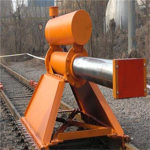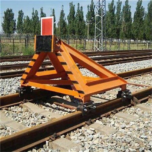 挡车器适用于铁路线路尽头线,防止火车溜车碰撞与摩擦带来危险。阻力增大。拥有较大的制动能力。列车挡车器花费少,成本低。铁路挡车器由主体架和两对增力器组成,全长2800mm。由板弹簧、弹簧座、楔铁、承座组成弹性加压装置,安装在主体架的制动轨和增力器制动轨中,它的作用是在挡车器静态时就形成予压力,增加制动时的摩擦阻力,并且在动态时能使制动力持续不断地起作用,直至停车。缓冲橡胶板车辆的撞击力由缓冲橡胶板、支座左右支臂传递到制动轨。制动轨、弹簧座.与基本轨产生摩擦阻力阻止车辆滑行。