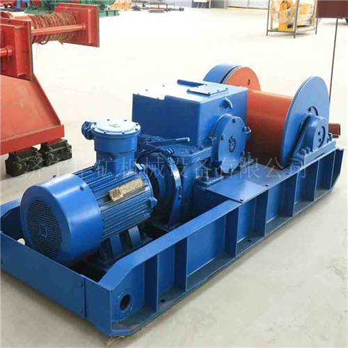 回柱绞车是煤矿井下回柱放顶之用,适用于薄煤层和急倾斜采煤工作面,以及在各种采煤工作面上回收被矸石长结的金属支柱或沉入底板。回柱绞车也可用作移溜槽,搬移皮带运输机头等辅助牵引工作。回柱绞车的电气设备具有防爆性能,可用于有煤尘及瓦斯的矿井中。本绞车的类型为单筒缠绕,采用涡轮蜗杆减速器和开式齿轮传动。绞车采用涡轮蜗杆减速器,必须采用水平安装方式,,以确保涡轮蜗杆的浸油润滑质量。