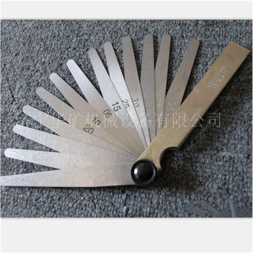 塞尺由一组具有不同厚度级差的薄钢片组成的量规。塞尺用于测量间隙尺寸。在检验被测尺寸是否合格时,可以用通止法判断,也可由检验者根据塞尺与被测表面配合的松紧程度来判断。塞尺一般用不锈钢制造,最薄的为0.02毫米;最厚的为3毫米。自0.02~0.1毫米间,各钢片厚度级差为0.01毫米;自0.1~1毫 米间,各钢片的厚度级差一般为0.05毫米;自1毫米以上,钢片的厚度级差为1毫米。